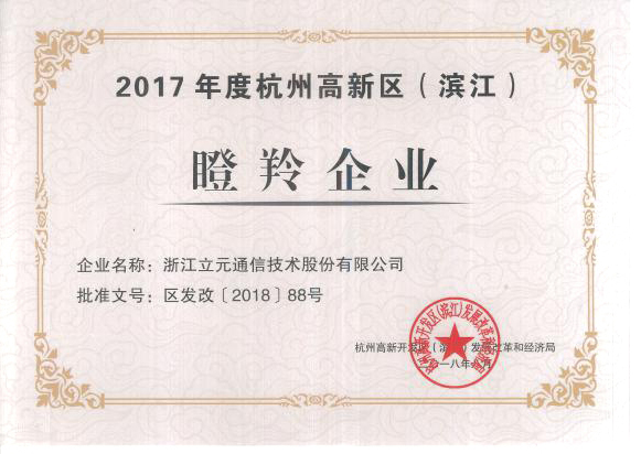 近日,杭州高新區(濱江)瞪羚企業公布。在眾多高新技術企業中,立元通信脫穎而出,被評為2017年度杭州高新區(濱江)瞪羚企業。這是立元通信繼2016年之后再次獲此殊榮!